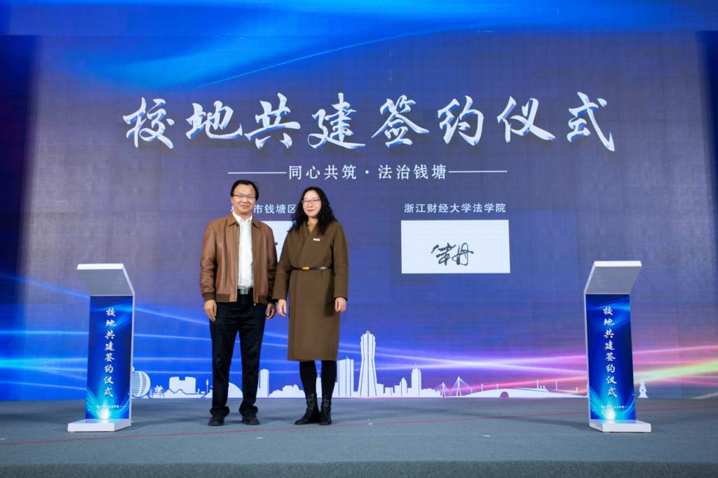 此外,校充分发挥属地管理优势,法学院与钱塘区司法局进行全面共建,互派“法治力量”,整合校地资源,为教师社会服务、学生实习就业搭建高质量平台。