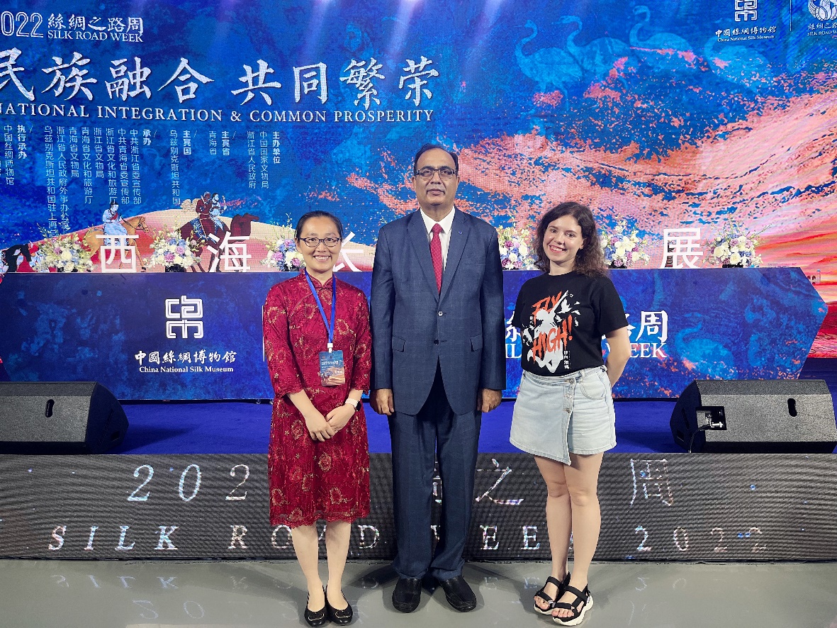 本网讯7月8日,“2022丝绸之路周”在中国丝绸博物馆开幕。开幕式上,我校留学生应邀参加了乌兹别克斯坦民族服饰秀演出,向与会嘉宾展示了丝路文化的丰富多彩和独特魅力。