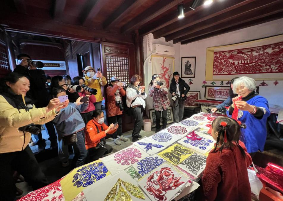 采风第一站走进梅渚古村。拥有近千年历史的梅渚古村,是浙江首批历史文化村落保护利用重点村之一。村内现存明清、民国时期建筑台门多处,孕育了剪纸、糟烧等多项非物质文化遗产,文化底蕴深厚。老师们背着相机,穿梭在曲径小巷、古雅祠堂、民俗技艺之间。古韵飘香,记忆梅渚。