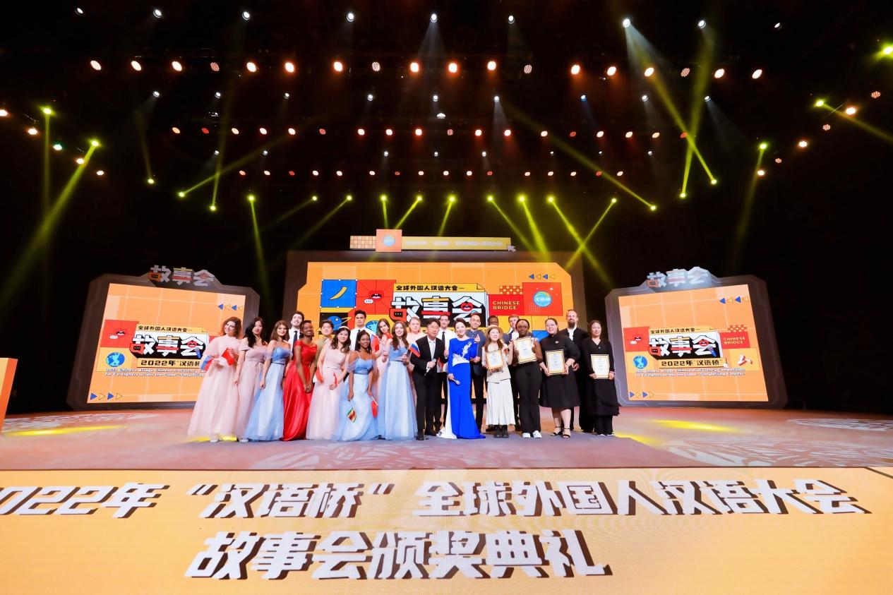 本网讯4月10日,2022年“汉语桥”全球外国人汉语大会故事会颁奖典礼在杭举行。学校荣获最佳组织奖。来自世界各国的参赛选手、指导老师、相关领域专家学者线上线下参加了颁奖活动。