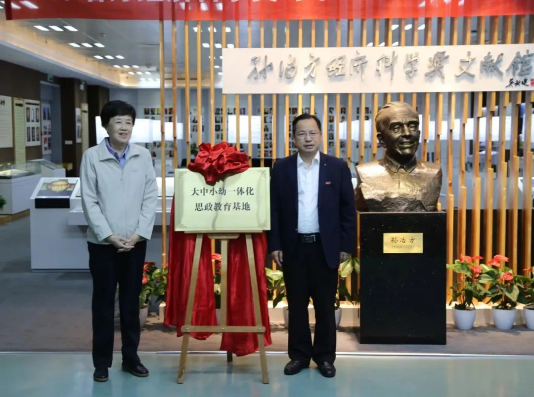 薛小和与楼胆群共同为孙冶方经济科学奖文献馆“大中小幼一体化思政教育基地”揭牌。“大中小幼一体化思政教育基地”是学校图书馆在新时代教育体制机制改革背景下健全立德树人体系建设中的实践内容,是对文献馆思政育人功能的进一步提升。通过该基地,文献馆将深入挖掘中国特色社会主义市场经济理论发展脉络,展现中国经济理论和中国经济学家的故事及其背后的思想力量和精神力量,充分发挥文献馆在协同一体化思政育人中的作用。