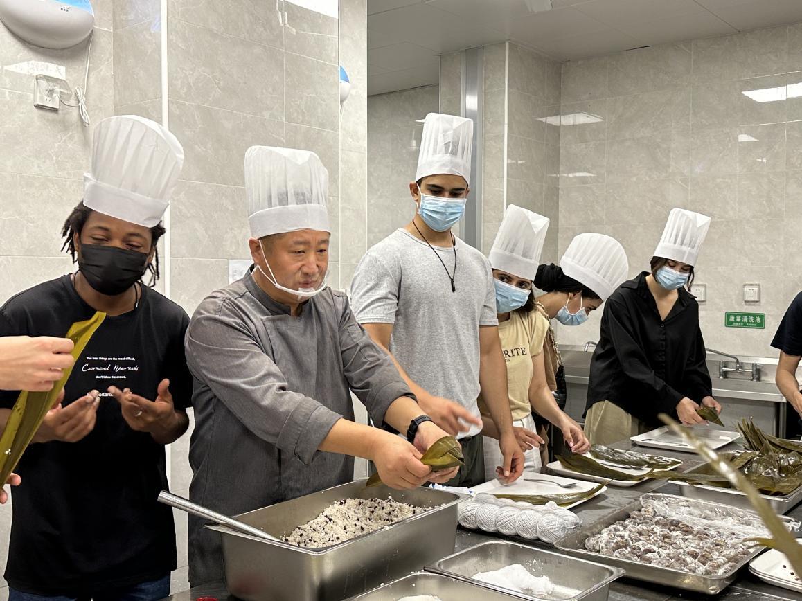 本网讯为让留学生体验劳动的快乐、分享劳动的果实、感受浓浓的端午节日氛围,6月20日,国际学院联合后勤服务中心开展留学生端午包粽子活动。