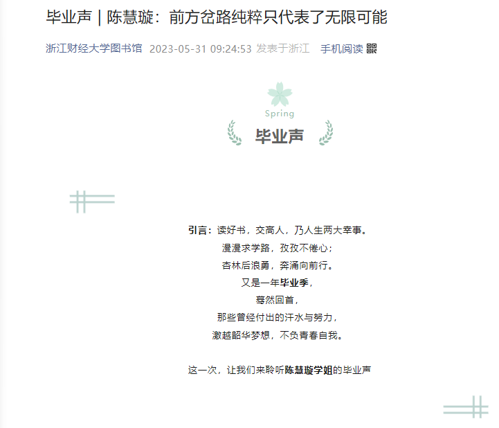 优秀毕业生专访