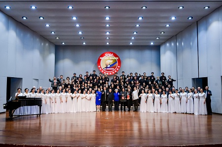 在中国著名指挥家、作曲家、音乐教育家孙毅的指挥下,合唱团作为示范团队向来自全省各地的合唱协会团体会员做了合唱排练示范展示。