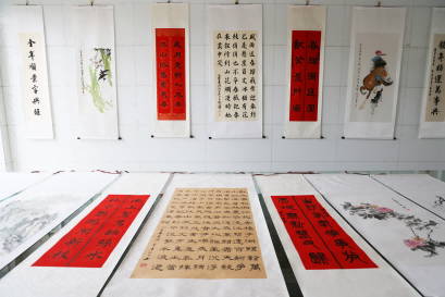 本网讯为弘扬优秀传统文化,丰富师生文化生活,新学期伊始,“龙舞新春 逐梦前行”楹联中堂书画作品展在行政楼大厅开展。