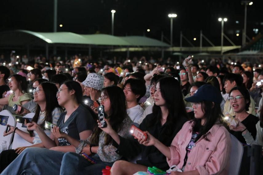 本次歌会以青春、音乐为主题,校艺术团流行音乐工作室现场演唱了《那些年》《逆光》等十余首耳熟能详的歌曲,场下同学们共同挥舞闪光灯,现场气氛瞬间被点燃。现场观众跟着音乐齐声合唱,欢呼声掌声雷动,共同表达了对毕业生的真挚祝贺和美好祝愿。