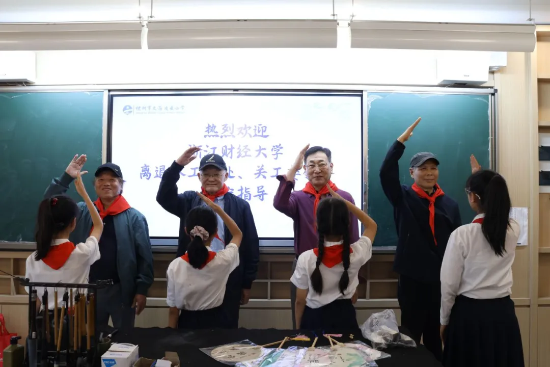 同学们热烈地欢迎老同志们的到来,少先队员代表献上红领巾,表达对这些老教师们的尊重和敬意。