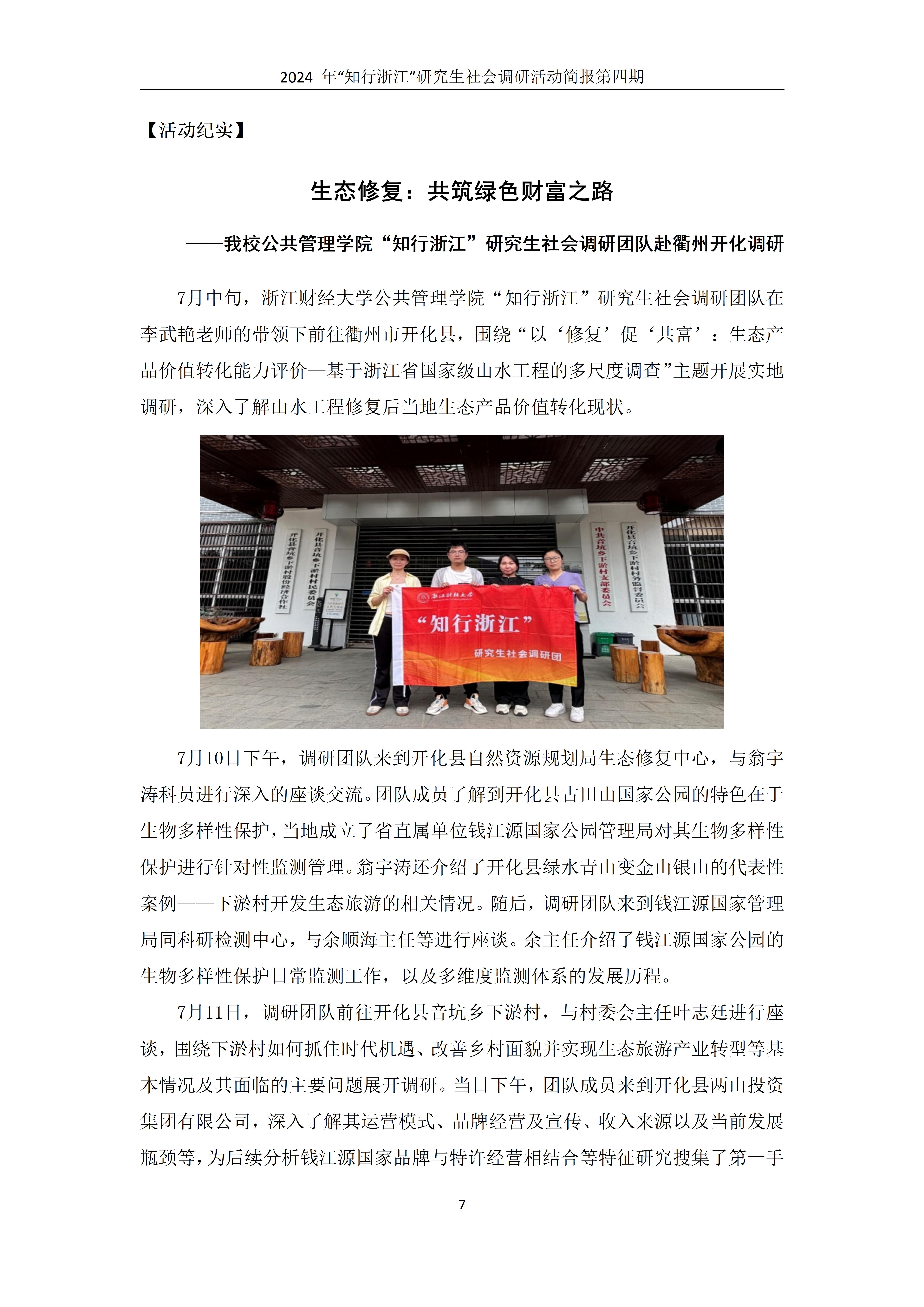 2024年“知行浙江”研究生社会调研活动简报第4期
