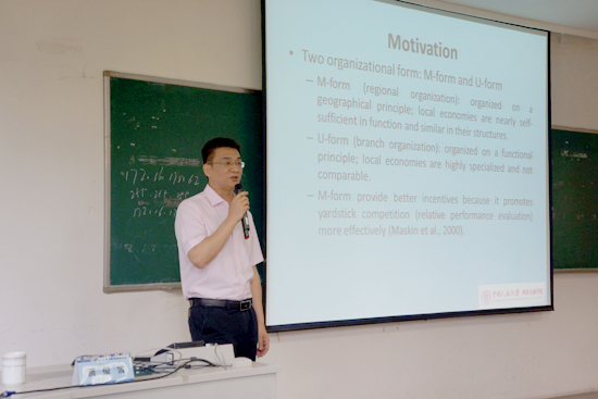 5月22日下午,中国人民大学财政与金融学院院长助理贾俊雪教授为我校师生报告了其论文《M-form Hierarchy,Competition,and Local Expenditure Policy》。