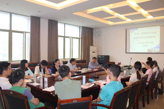 5月14日,广西民族大学文学院院长韦树关教授来我校作了题为《喃字、岱喃字、古壮字的共性与差异性》的学术报告。报告会由人文学院院长何华珍主持。