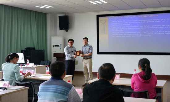 讲座后,唐要家副院长为吴逊所长颁发了我校兼职教授的聘书,并就双方在科学研究、政策咨询、举办国际学术会议、人才培养和合作交流等方面开展务实合作的机制和方式进行了深入协商。