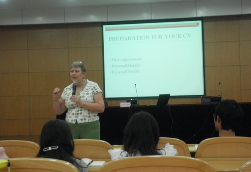 在简短而风趣的自我介绍之后,玛丽·哈德主任围绕几个大家都普遍关心的就业问题,从如何撰写一份成功的个人简历、如何在自我介绍中推销自己、如何做好面试准备三个方面向大家介绍了就业所需的能力和技巧。她认为,在研究生面临就业问题之时,首先应该清楚的是自己具有的素质和应该具有的素质。研究生要富有工作激情,有分析问题、解决问题和创新的能力,并能够清楚地自我定位。在撰写简历和面试过程中,要懂得用简练且具有表现力的语言,充分展示自身的专业水平、综合能力和积极的工作态度,就自己所取得的成绩作详细介绍,并对各种细节问题予以重视。