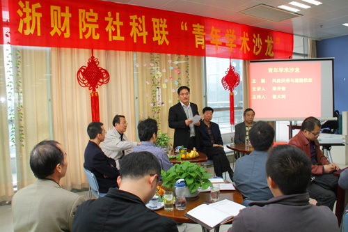 成立仪式后,“青年学术沙龙”举行了第一次学术活动,活动由经济与国际贸易学院承办,主题为“风险厌恶与激励效应”,崔大树教授主持了此次活动,李井奎老师作了主题报告。财政与公共管理学院、金融学院、经济与国际贸易学院等单位的20余位教师和10余位研究生展开了激烈的讨论。整个过程气氛热烈、内容实在、亲切愉快,充分展现了青年教师积极进取、富有朝气、热爱学术、理性和人文交融、修身与博爱相济的风采和情怀。
