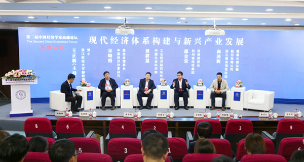 4月28日,由孙冶方经济科学基金会与我校联合主办的第二届中国经济学家高端论坛之高端访谈“现代经济体系构建与新兴产业发展”在我校下沙校区举行。参加访谈的嘉宾有中国经济改革研究基金会理事长宋晓梧,中国社科院工业经济研究所所长黄群慧,杭州娃哈哈集团投资部部长邵金荣、浙江捷尚视觉科技股份有限公司董事长兼总裁尚凌辉。访谈由我校经济学院副院长王正新博士主持。