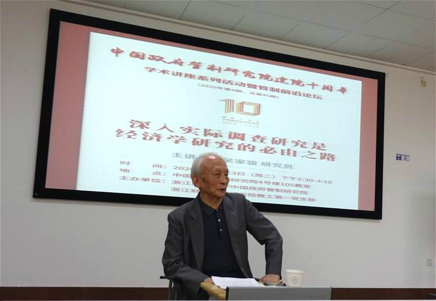 本网讯10月13日,中国社会科学院名誉学部委员、工业经济研究所原副所长吴家骏研究员应邀来校作了题为“深入实际调查研究是经济学研究的必由之路”的讲座。讲座由省特级专家、中国政府管制研究院院长王俊豪教授主持。