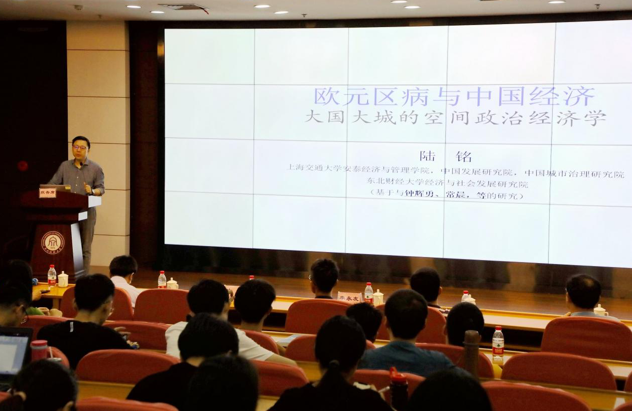 本网讯6月10日,上海交通大学安泰经济与管理学院特聘教授、教育部“长江学者”特聘教授陆铭应邀来我校作题为“欧元区病与中国经济”的学术报告。报告会由副校长李永友主持。