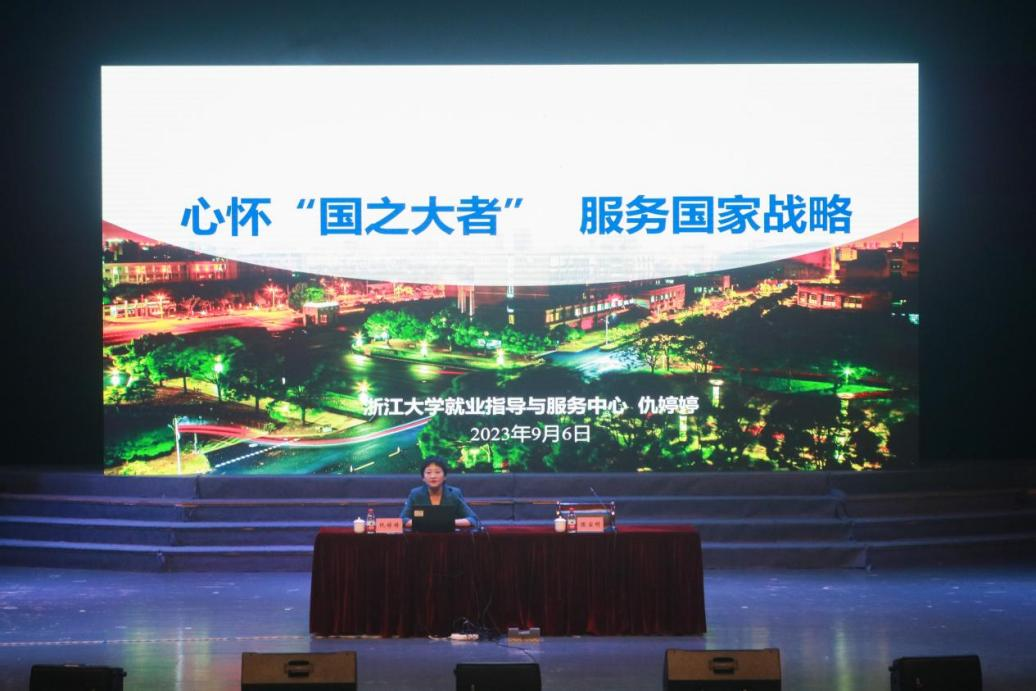 浙江大学就业指导与服务中心副主任仇婷婷作了题为《心怀“国之大者”服务国家战略》的专题讲座,鼓励研究生要站在山顶观察世界、思考人生,做到“知己”“知彼”“知时”,提前做好职业生涯规划。