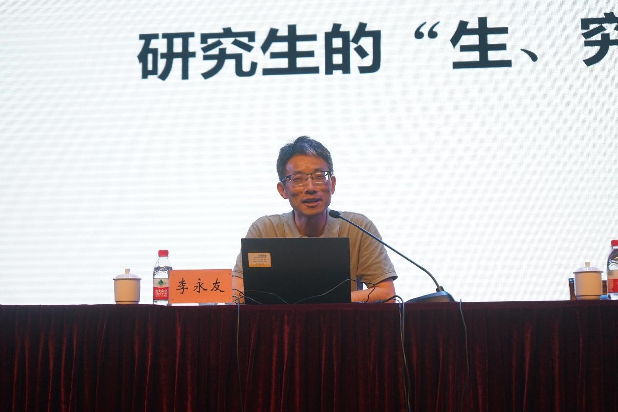 李永友教授以《研究生的“生、究、研”》为题给新生们上了一堂学术规范课。他从“生”“究”“研”三个字的涵义出发,围绕研究选题、论文结构、文献综述、论点总结、学术规范等方面,阐述了“什么是学术研究”“如何做好学术研究”“如何遵循学术道德”等问题。他指出,研究生应具有充满好奇和刨根究底的探索精神,并能运用适当理论和科学方法揭示真相,在学习和研究过程中要恪守“术”与“德”的精神,做一个学术诚、德行正的科研人。