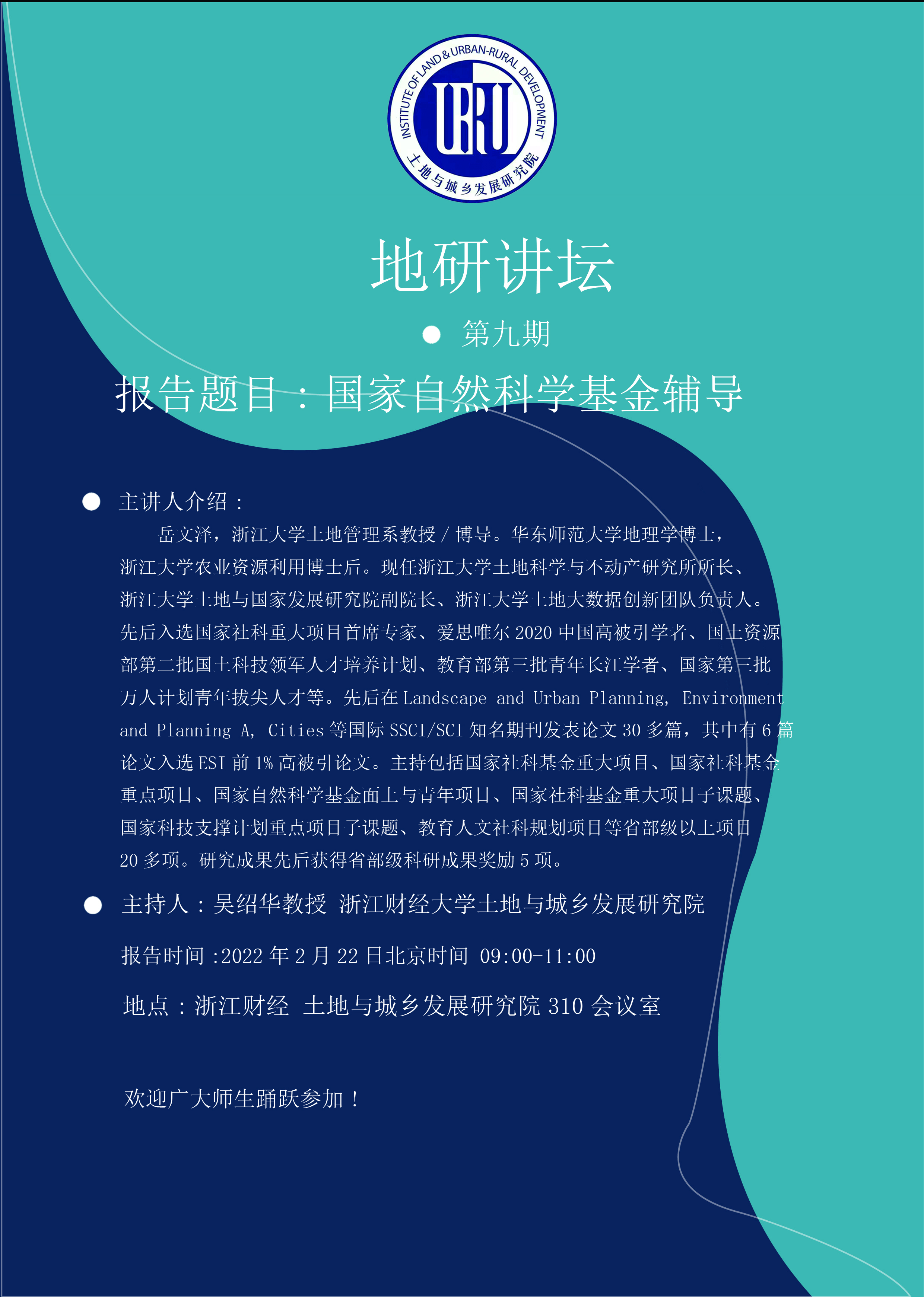 地研讲坛-第九期:国家自然科学基金申报辅导