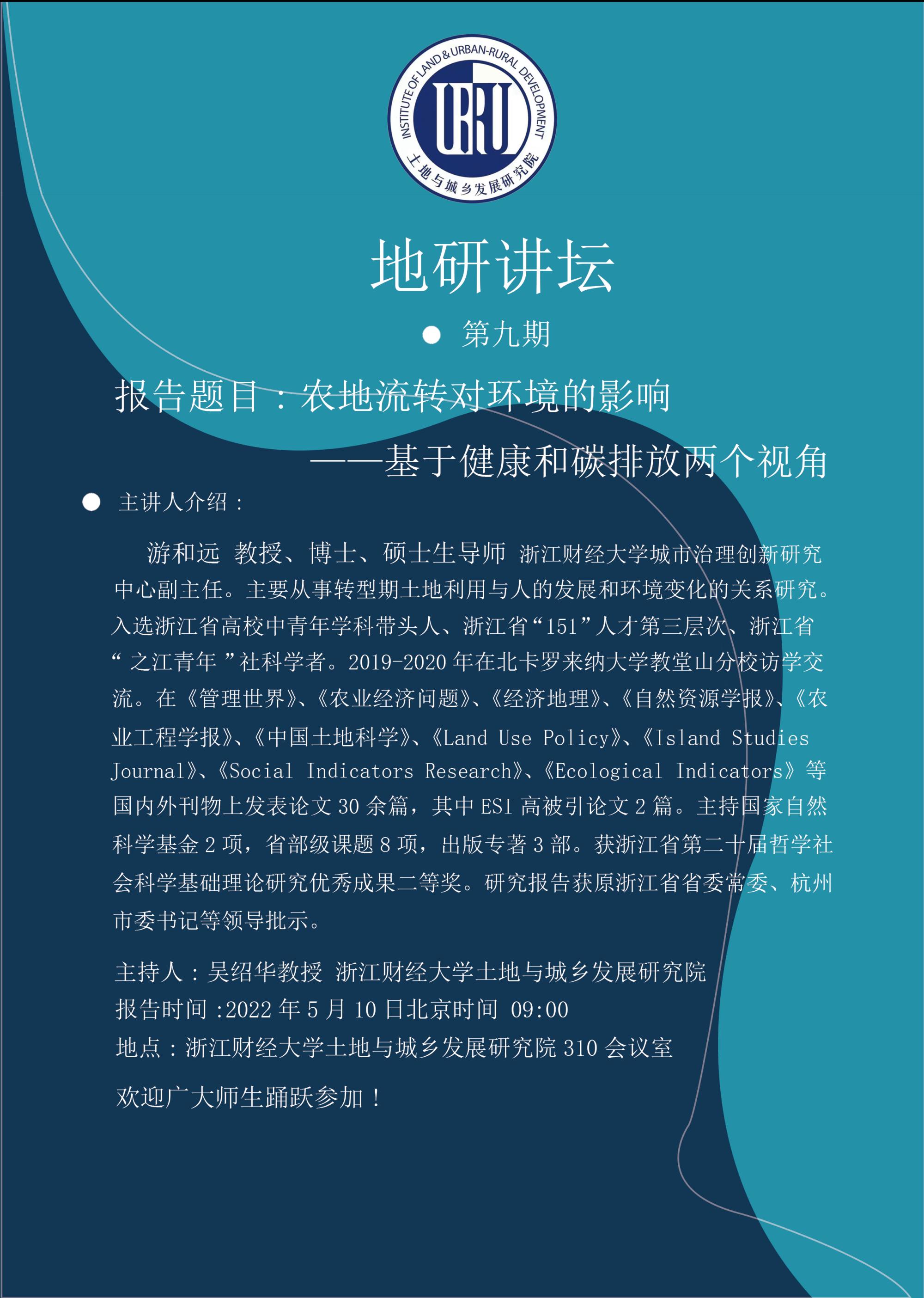 地研讲坛-第十期:农地流转对环境的影响--基于健康和碳排放两个视角