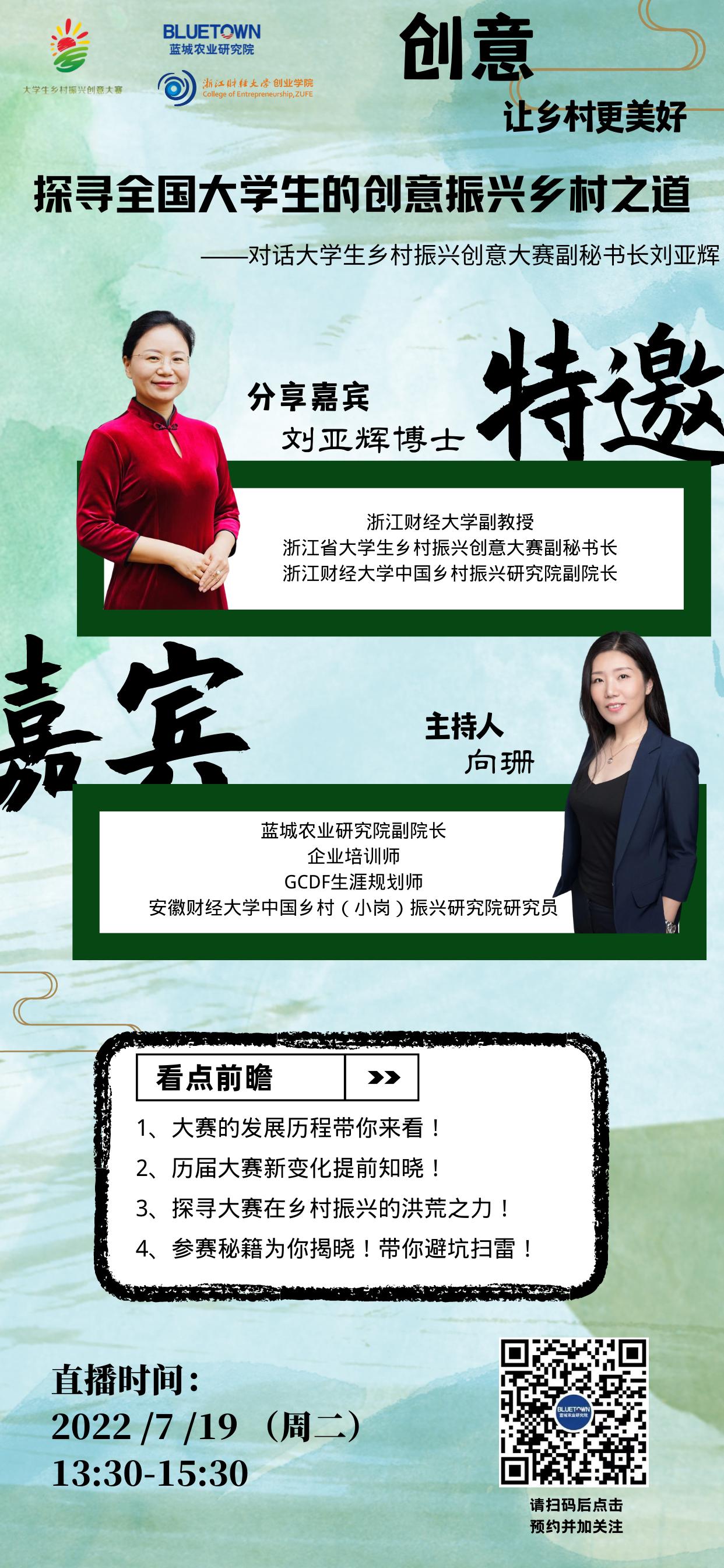 讲座主题:探寻全国大学生的创意振兴乡村之道-对话大学生乡村振兴创意大赛副秘书长刘亚辉