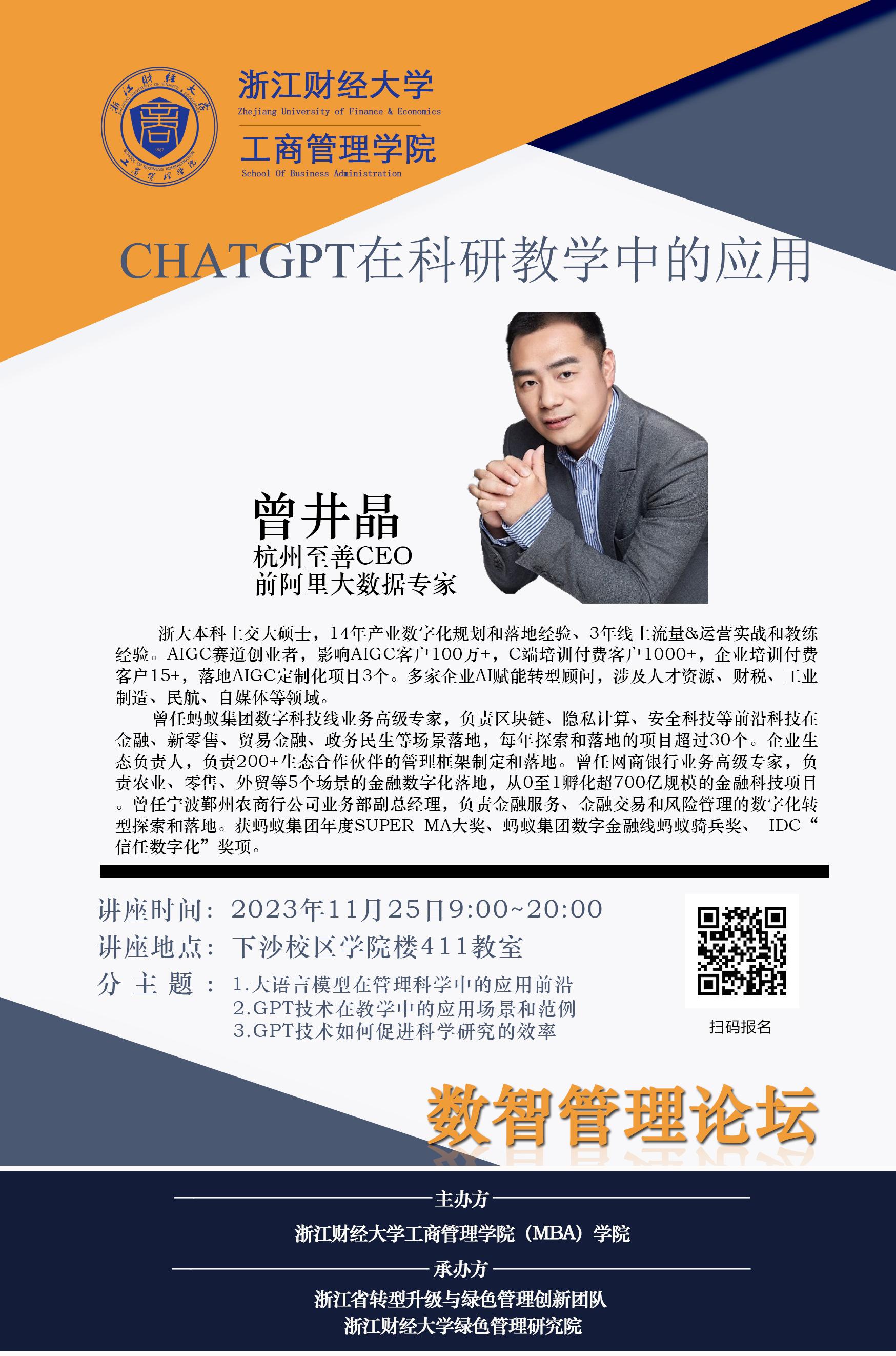 【工商管理学院公开讲座】曾井晶:CHATGPT在科研教学中的应用