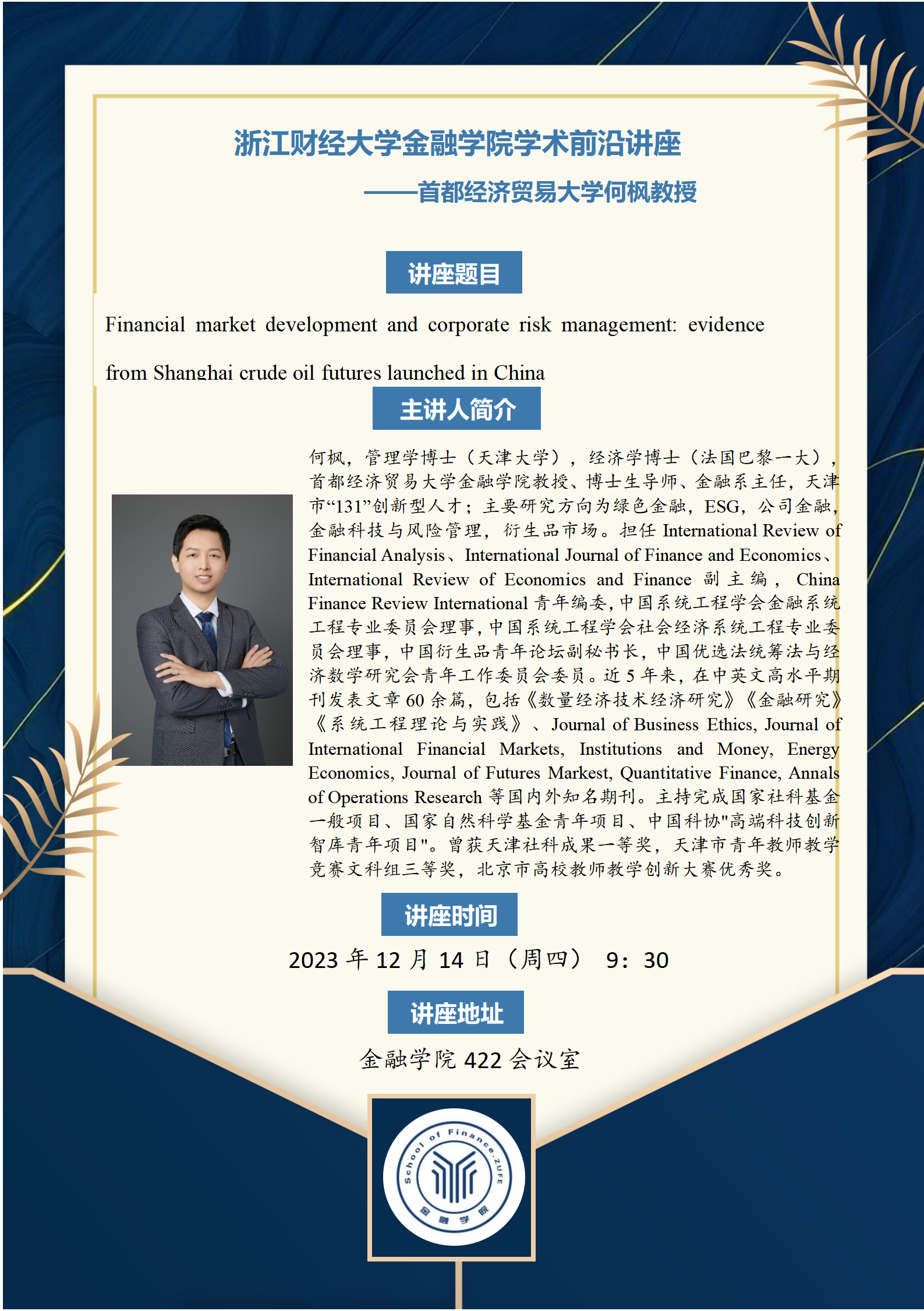 金融学院学术前沿系列讲座:首都经济贸易大学何枫教授