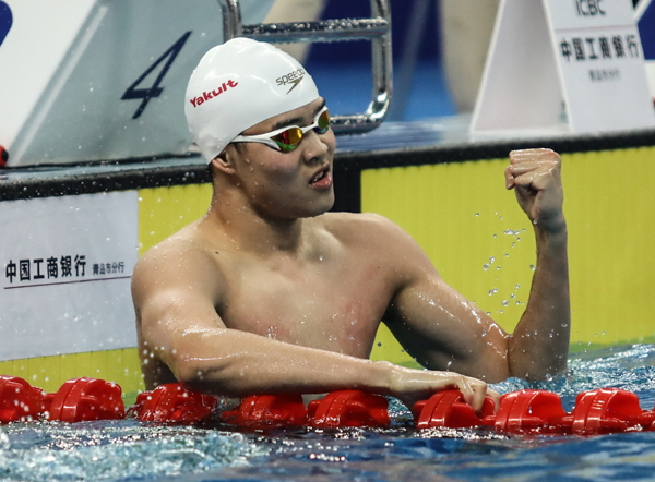 近日,在全国游泳冠军赛暨世锦赛选拔赛百米自由泳的赛道上,一条“飞鱼”正加速向前冲刺,终点的距离越来越近:25米、10米、5米……“男子100米自由泳第一名何峻毅,用时48秒10!”当听到这个成绩时,在场的观众们都为之振奋:百米自由泳48秒10,位列今年世界第二!这位被诸多媒体预言为中国百米新“飞鱼”的游泳健将便是来自ued体育 2016级市场营销专业的高水平运动员何峻毅。