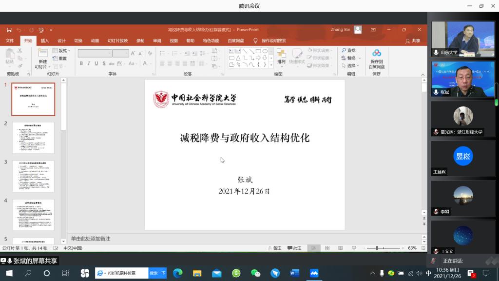 近日,第一届中国国家预算治理论坛在山东大学召开,中国国家预算治理研究联盟成立仪式同期举行。论坛上,中国社会科学院大学副校长、我院院长张斌研究员作了题为“减费降税与政府收入结构优化”的报告,他从短期与长期两个维度对减税降费进行了理论界定,梳理分析了2008年以来的减税降费政策变迁,结合当前经济社会发展背景以及短期目标和长期任务,兼顾财政的可持续性,并提出了完善税制改革、建设智慧税务、优化政府收入结构、改革全口径预算管理制度等方面的建议。