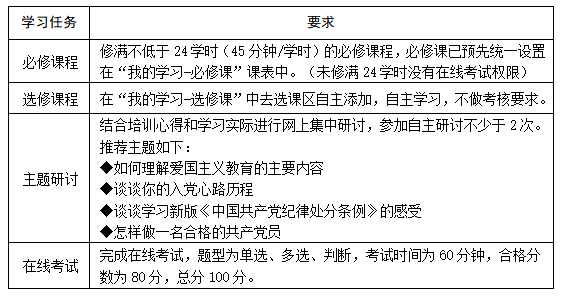 本次培训分为课程学习、主题研讨、在线考试三项学习任务。