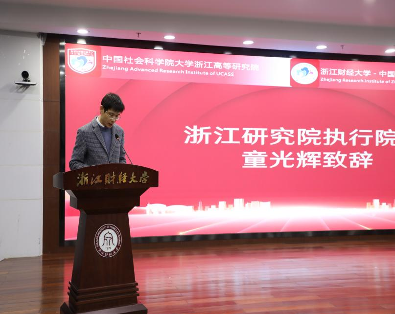 浙江研究院执行院长童光辉对浙研院专项奖学金进行了简要介绍,并对即将踏上访学之旅的同学们表示祝贺,他对同学们提出两点希望:一是拥抱中国社科大的知识殿堂,充分利用社科大的学术资源,加强与导师的交流,强化解决问题的能力;二是当好中国社科大和浙财大的重要使者,广结良师益友,展现浙研院学子的良好风貌,在学习之余感受首都的风土人情。