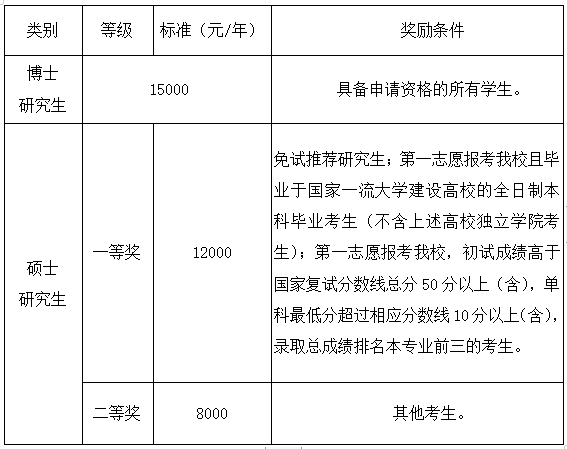 注:2020级硕士研究生中,法律(非法学)专业奖学金全额发放,其余专业奖学金减半发放。
